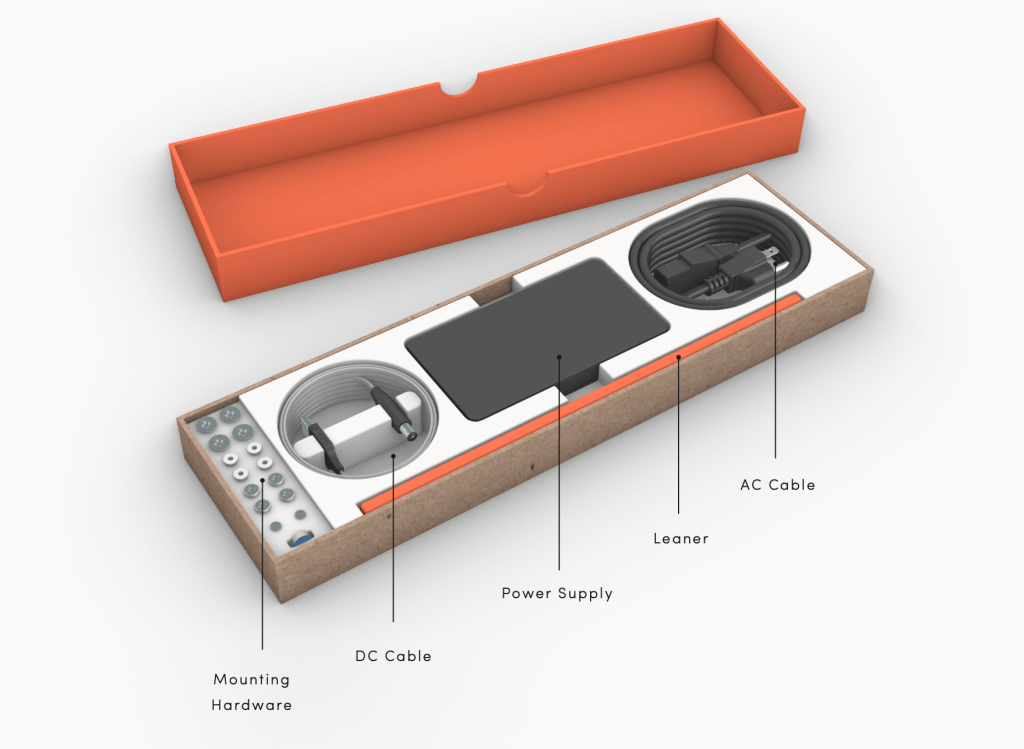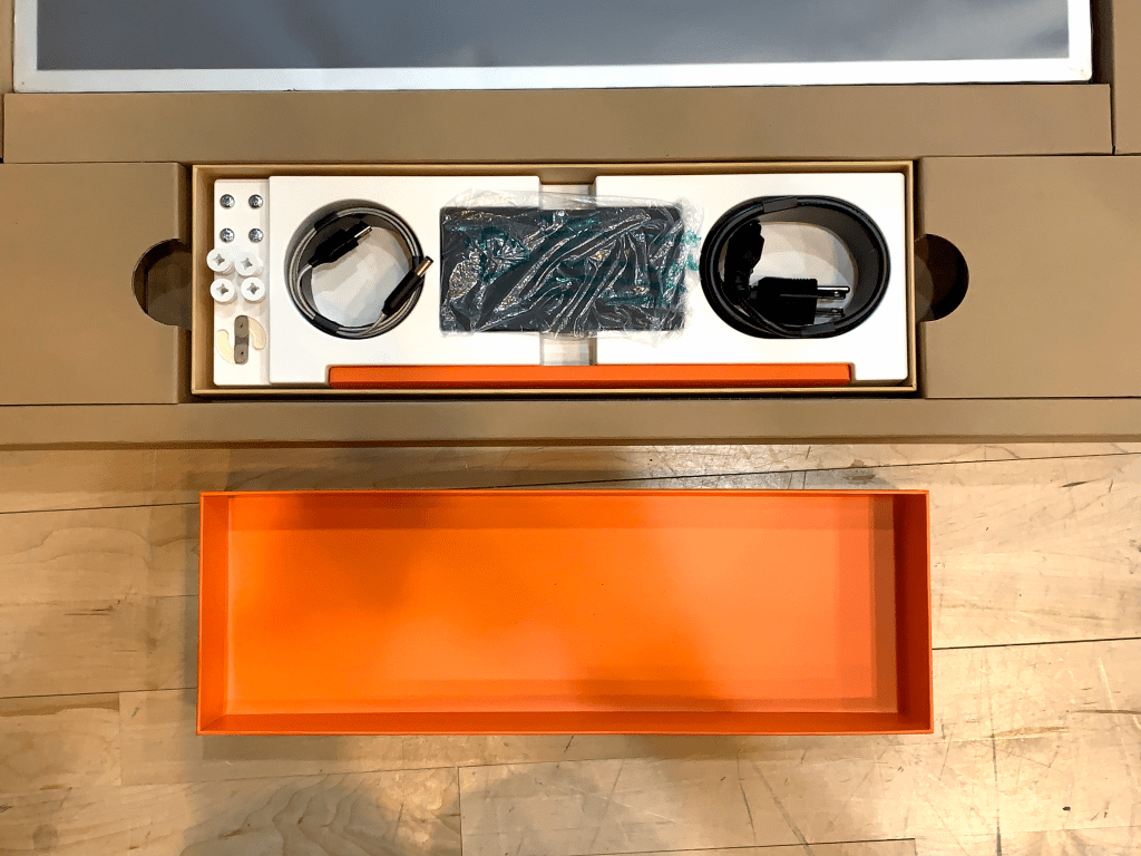 Un écran hyper mince et élégant dans sa simplicité, presque monolithique, mérite un packaging tout aussi soigné.